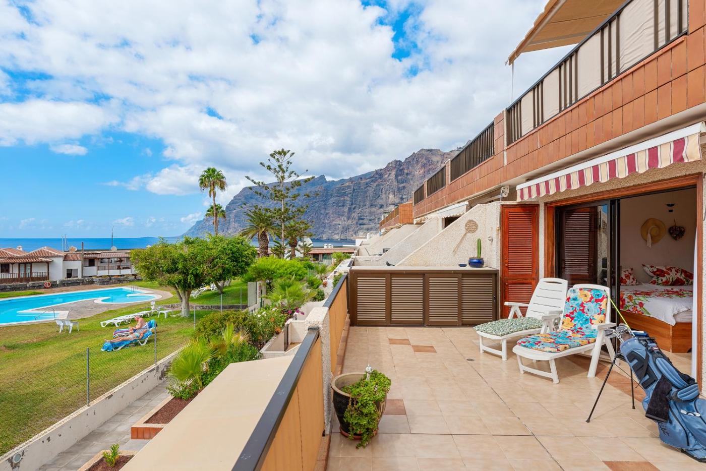 Boasting air-conditioned accommodation with a private pool, pool view and a patio, Terraza del Sol - Traumapartment, zentral, Meerblick, 2SZ, Pool is situated in Acantilado de los Gigantes. Among the facilities at this property are private check-in and check-out and a minimarket, along with free WiFi throughout the property. The property is non-smoking and is located 300 metres from Los Gigantes Beach.