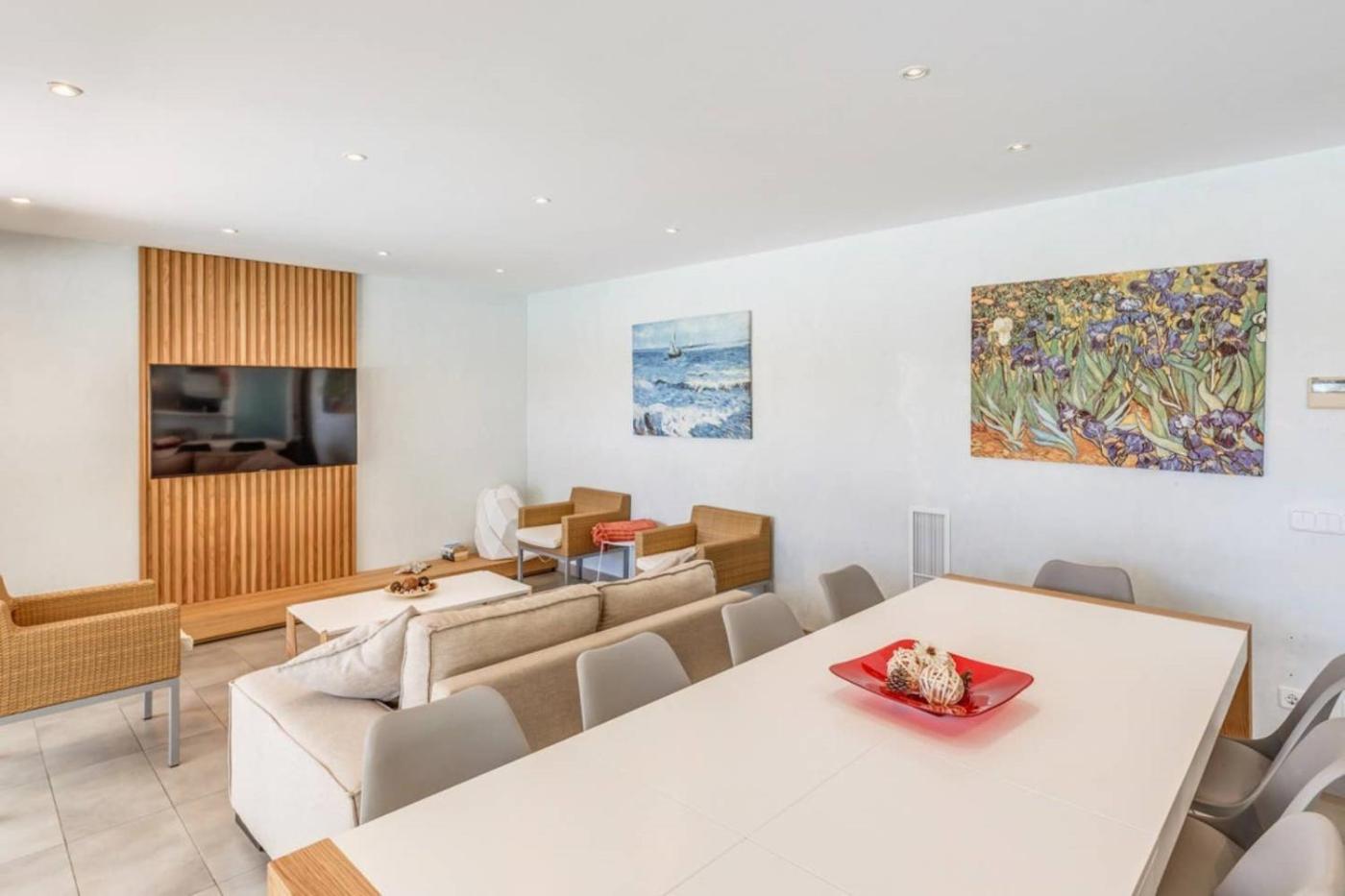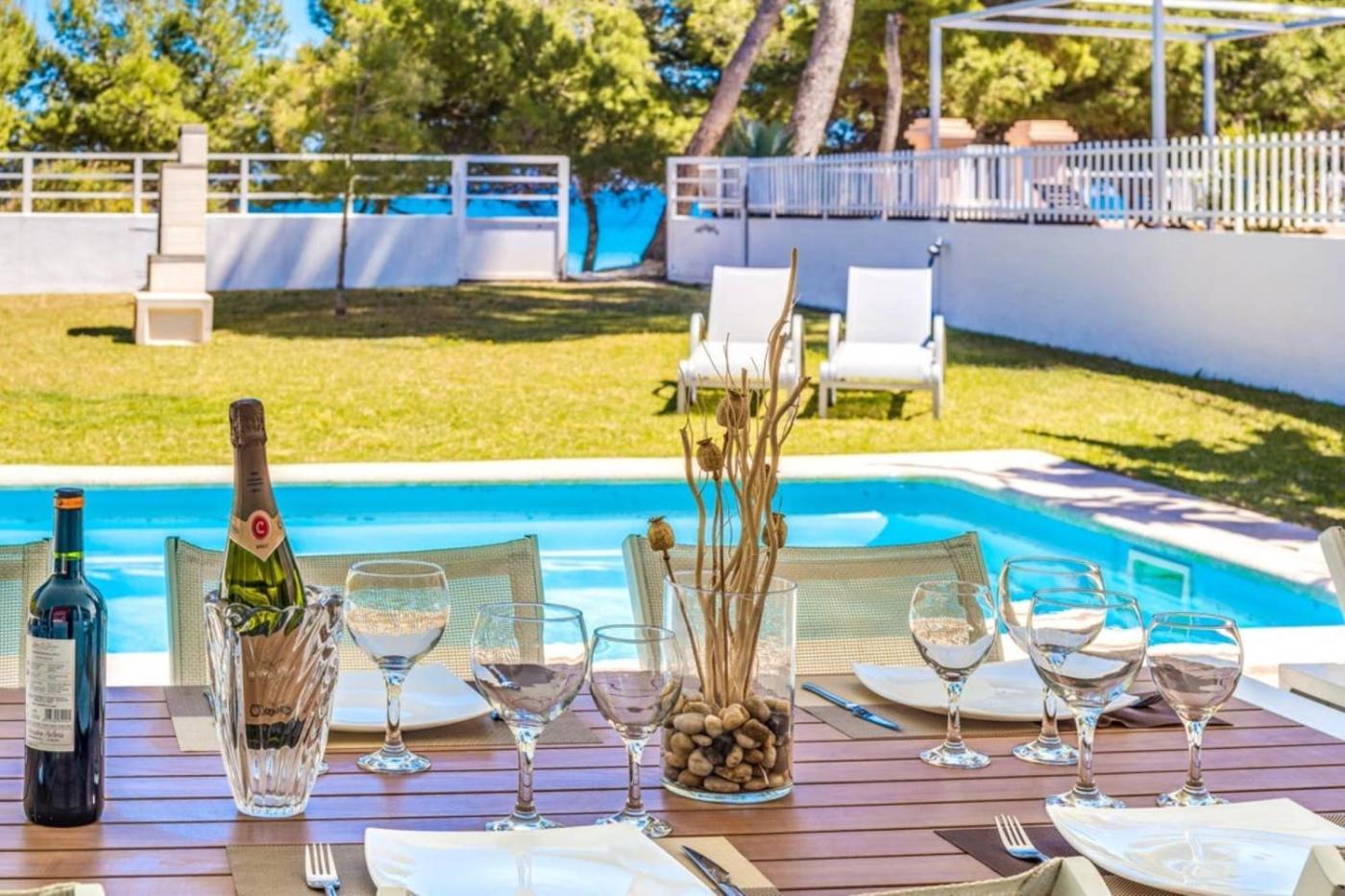 Six-Bedroom House. The private pool is the special feature of this holiday home. Featuring a private entrance, this spacious holiday home also comprises 6 separate bedrooms and 4 bathrooms with a bath and a shower. Guests will find a dishwasher, kitchenware, an oven and a microwave in the well-equipped kitchen. The holiday home also provides guests with a barbecue. The holiday home provides air conditioning, a washing machine, a coffee machine as well as a terrace with sea views. The unit offers 12 beds.