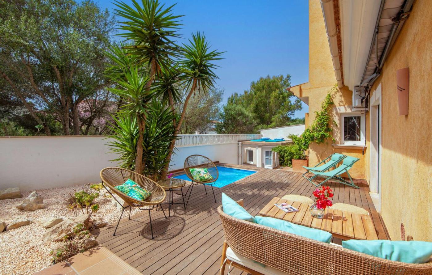Guests can enjoy the outdoor swimming pool at the holiday home.