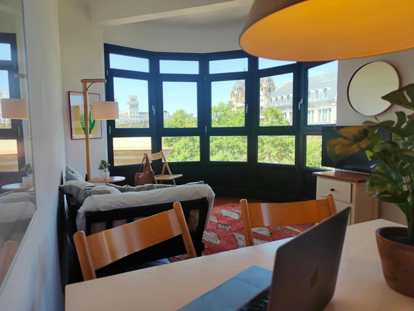 In the centre of Barcelona, located within a short distance of Plaça de Catalunya and Portal de lAngel, Rambla Skyline Plaça Catalunya. RC. Offers free WiFi, air conditioning and household amenities such as a microwave and coffee machine. It is situated 600 metres from Tivoli Theatre and provides a lift. The property is non-smoking and is2.5 km from Sant Miquel Beach.