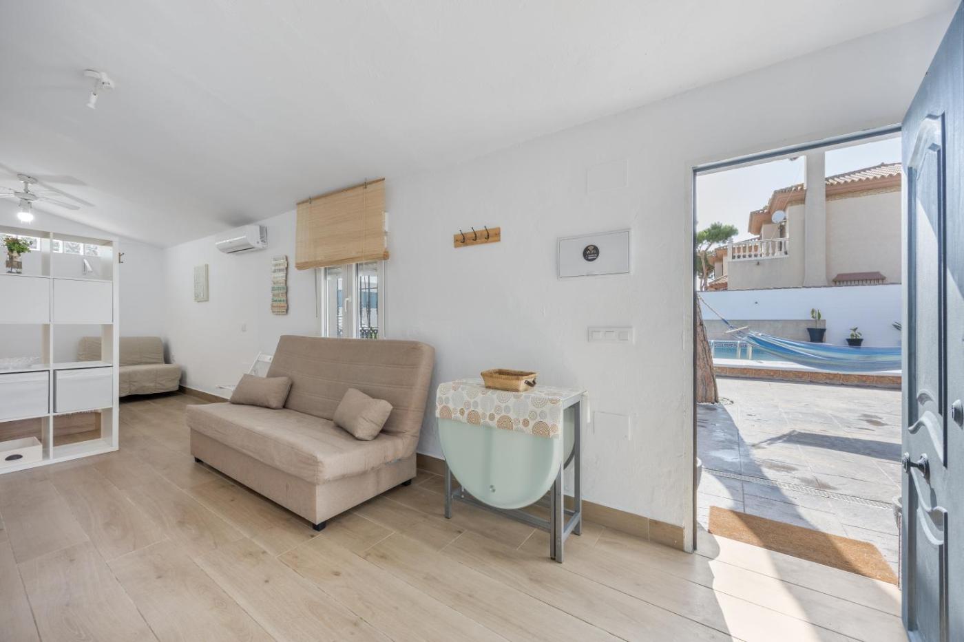 One-Bedroom House. This holiday homes standout feature is the private pool. Boasting a private entrance, this air-conditioned holiday home includes 1 living room, 1 separate bedroom and 1 bathroom with a shower and a hairdryer. Guests will find kitchenware, a microwave and a toaster in the kitchen. The holiday home also features a barbecue. Featuring a patio, this holiday home also offers a washing machine, a coffee machine and a TV with streaming services. The unit has 3 beds.