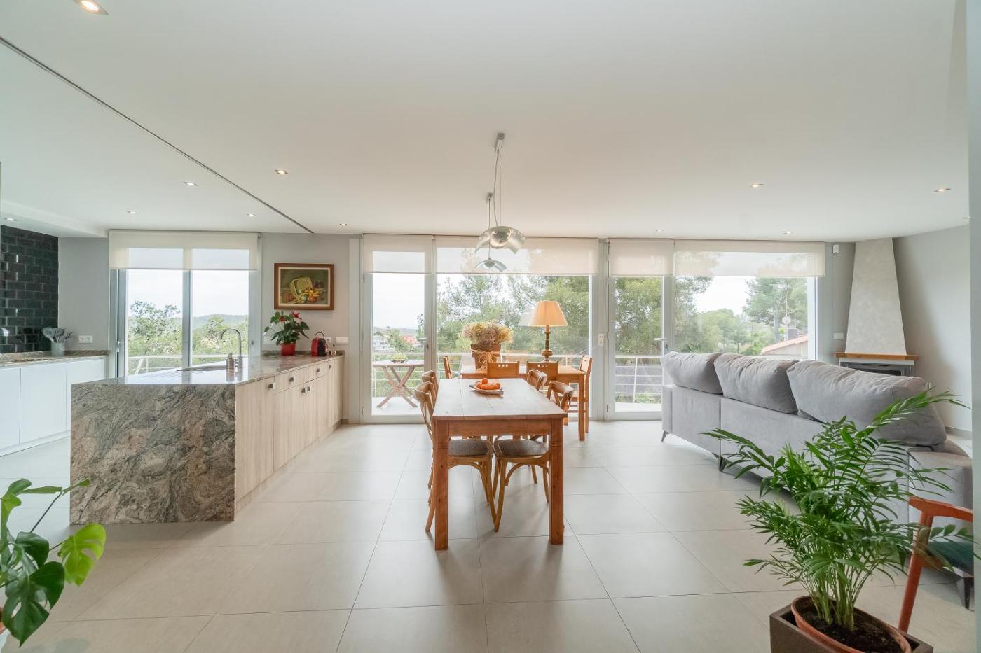 Five-Bedroom House. This holiday home features a pool with a view. Boasting 5 bedrooms and 6 bathrooms, this spacious holiday home has a living room and terraceyou can relax. Guests will find a stovetop, a refrigerator, a dishwasher and an oven in the well-fitted kitchen. The holiday home also comes with a barbecue. The holiday home features a washing machine, a private entrance, a tea and coffee maker, a flat-screen TV, as well as sea views. The unit offers 7 beds.