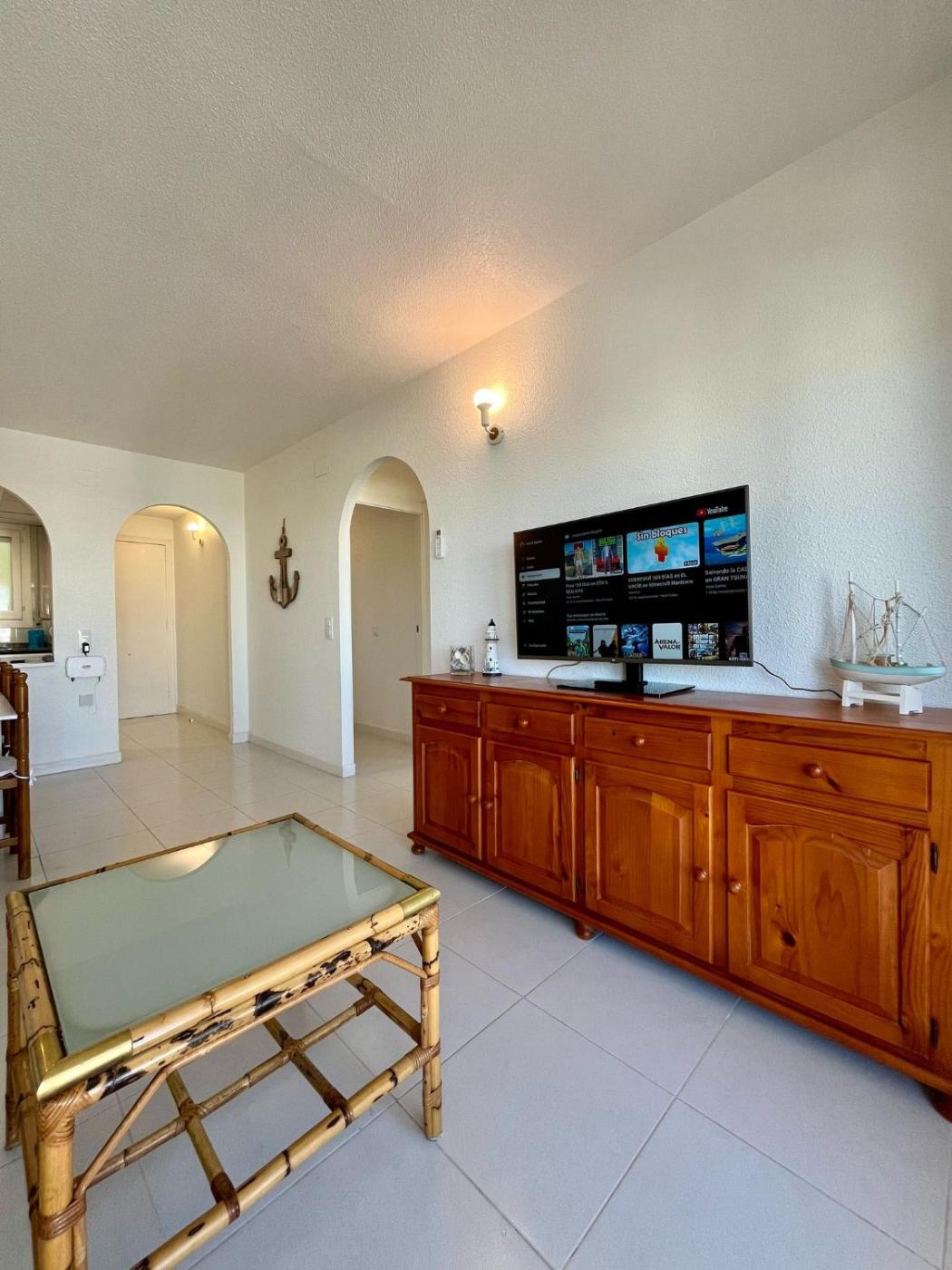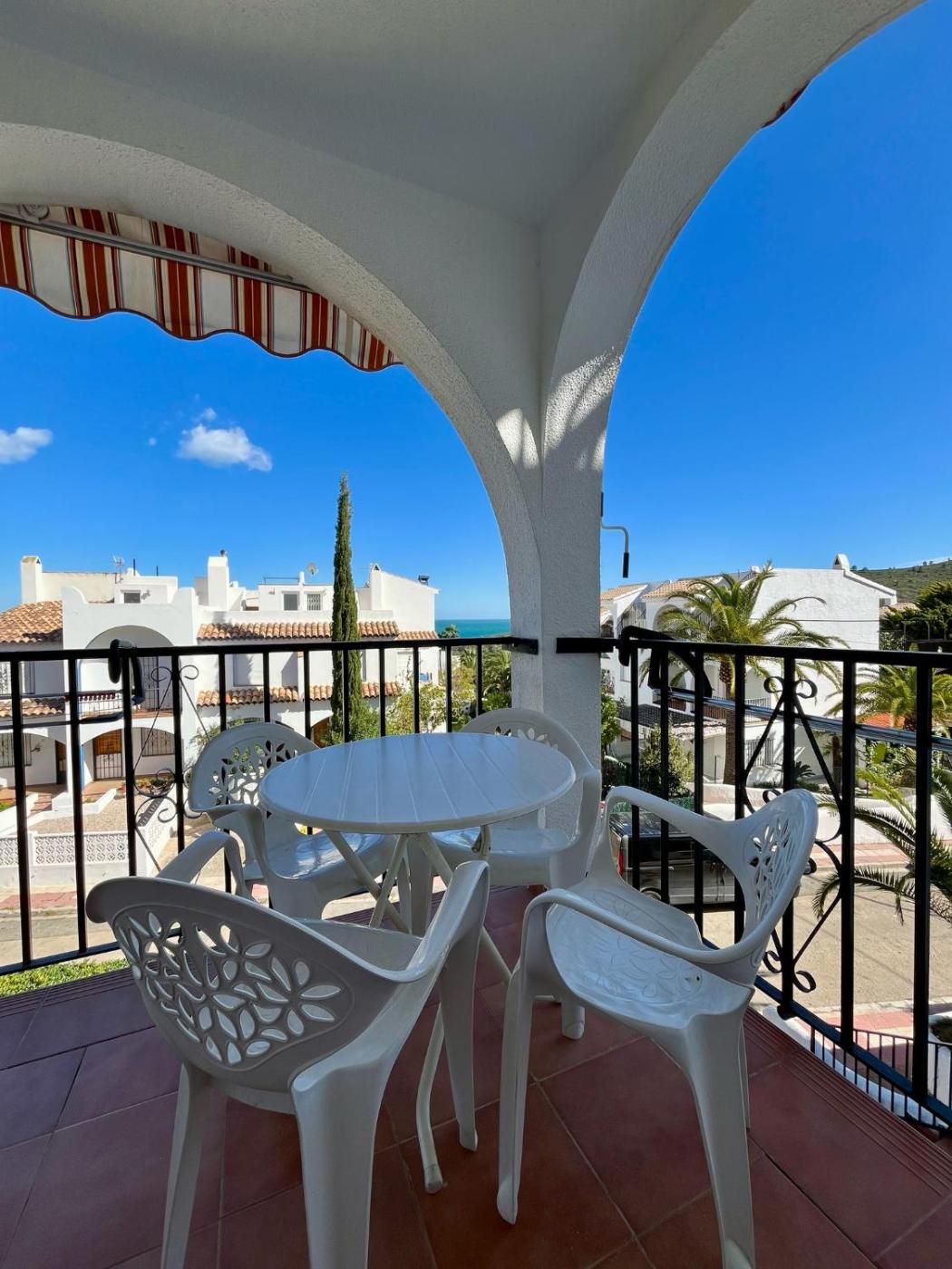 Located in Peñíscola and only 1.5 km from Cala del Volante Beach, Font Nova Peñiscola, Sumergete en esta espectacular propiedad ibicenca a los pies del Mediterraneo provides accommodation with sea views, free WiFi and free private parking. This apartment offers air-conditioned accommodation with a balcony. The rooftop pool features a water slide and fence.