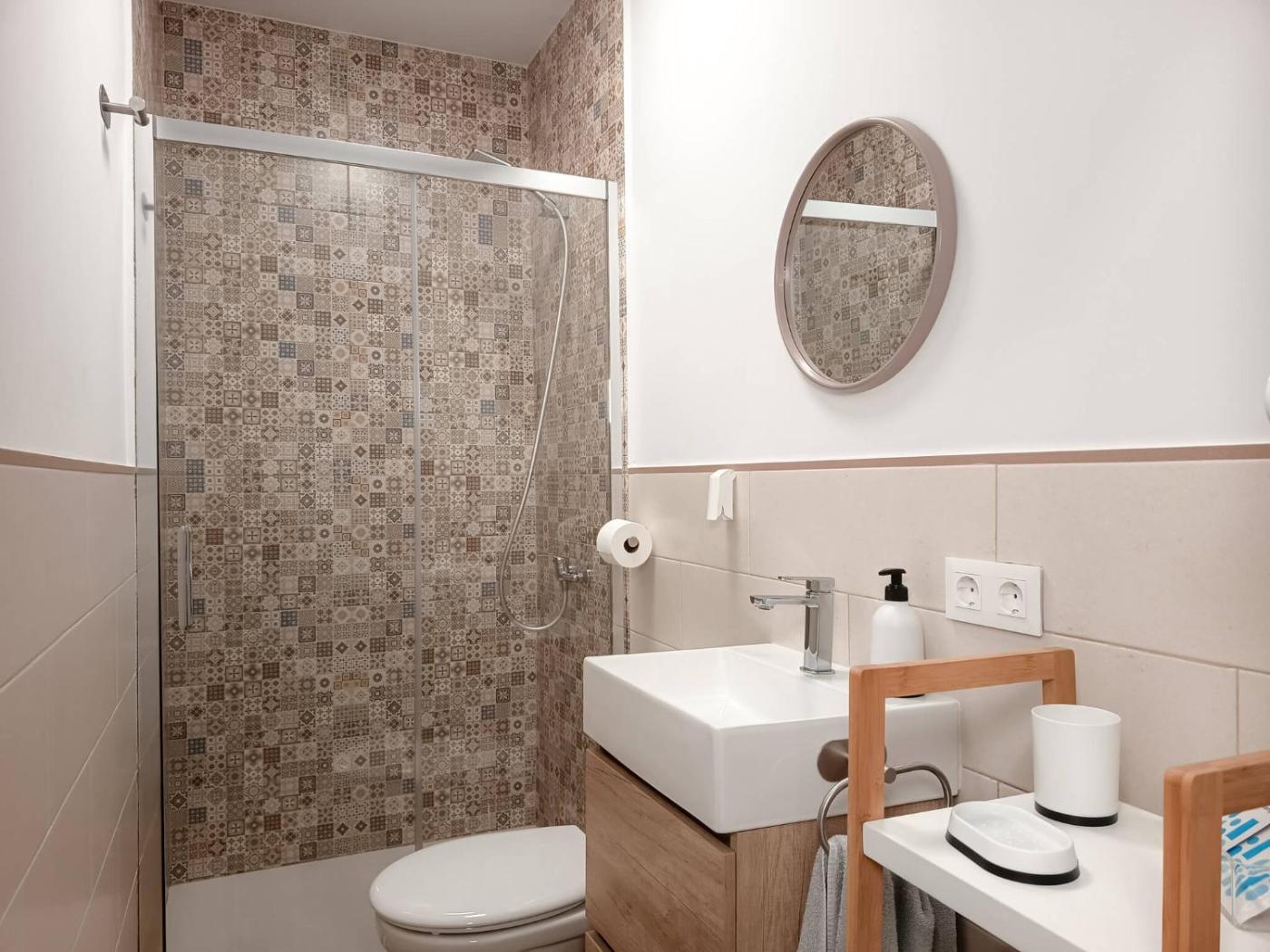 Modern Amenities: Guests enjoy free WiFi, air-conditioning, a washing machine, and a fully equipped kitchen with a coffee machine, microwave, and oven. Additional amenities include a dining area, sofa bed, and a walk-in shower.