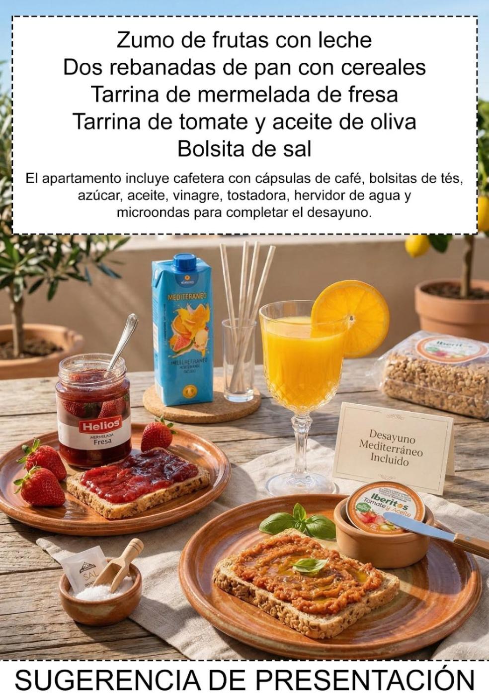 A continental breakfast is available at the apartment.