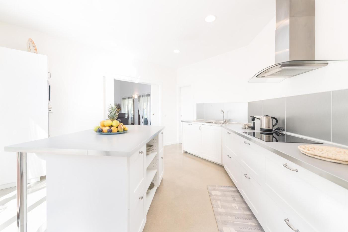 Four-Bedroom House. Guests will have a special experience as this holiday home provides a private pool and a fireplace. Boasting 4 bedrooms and 3 bathrooms with a bath, this spacious holiday home has a well-fitted kitchen and a terrace. Guests will find a refrigerator, a dishwasher, kitchenware and an oven in the well-equipped kitchen. The holiday home also features a barbecue. The air-conditioned holiday home offers a TV with satellite channels, a washing machine, a tea and coffee maker, tumble dryer as well as sea views. The unit offers 6 beds.